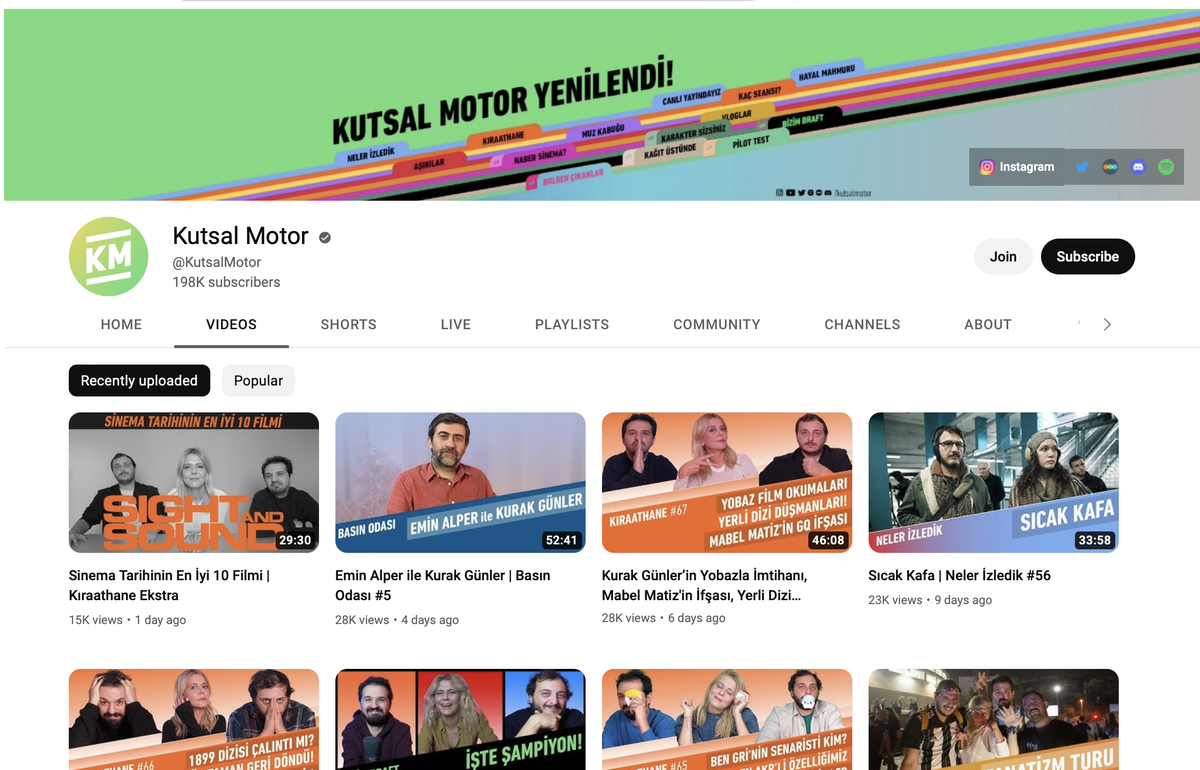 Named after French filmmaker Leos Carax's movie Holy Motors, Kutsal Motor features conversations between three close friends with backgrounds in cinema criticism and arts journalism. The founders and contributors employ an ironic approach to discussions of popular culture and arts news.